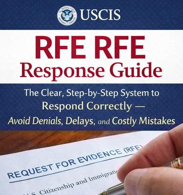 👉 The USCIS RFE Response Guide helps you understand RFEs before they lead to denial and shows you how to recover strategically after denial — preserving credibility and future opportunity — in over 60 pages of clear, practical guidance.